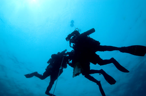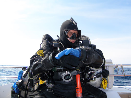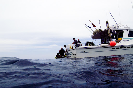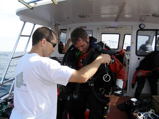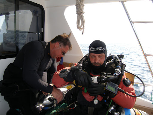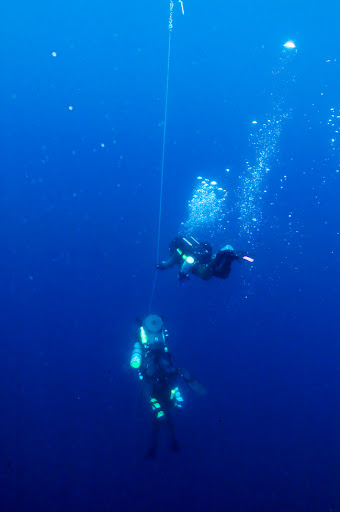 After an all night boat ride and spending some time by the bottom finder carefully picking the mark, the command to dive seemed to come pretty quickly... considering the boys were dropping down to nearly 400 fsw!