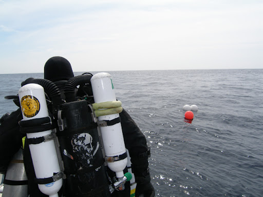 I will leave the details of the dive to the guys who did it (hint: look for an article in a upcoming Advanced Diver Magazine), but I will say that things went without a hitch and the guys did find a wreck and had a great dive. They reported relatively warm (51F) conditions on the bottom with water 70+ near the surface. Support divers were used to swap out bottles and check on divers starting at about 120 feet. A support diver was in the water with the decompressing divers at all times from ~40 feet to the surface to monitor for any signs of oxygen toxicity. The entire team was CCR with nearly every major manufacturer represented (Evolution, Prism, Ouroboris, 2 Megs, and an Optima)